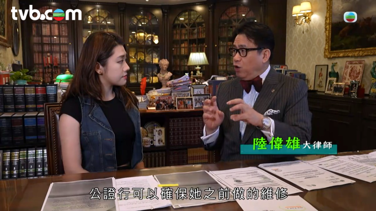 大律師陸偉雄提出法律建議,指苦主張小姐第一可以找公證行,以確保之前所做維修無紕漏。第二,向滲水辦尋求協助,以解決問題。![]()