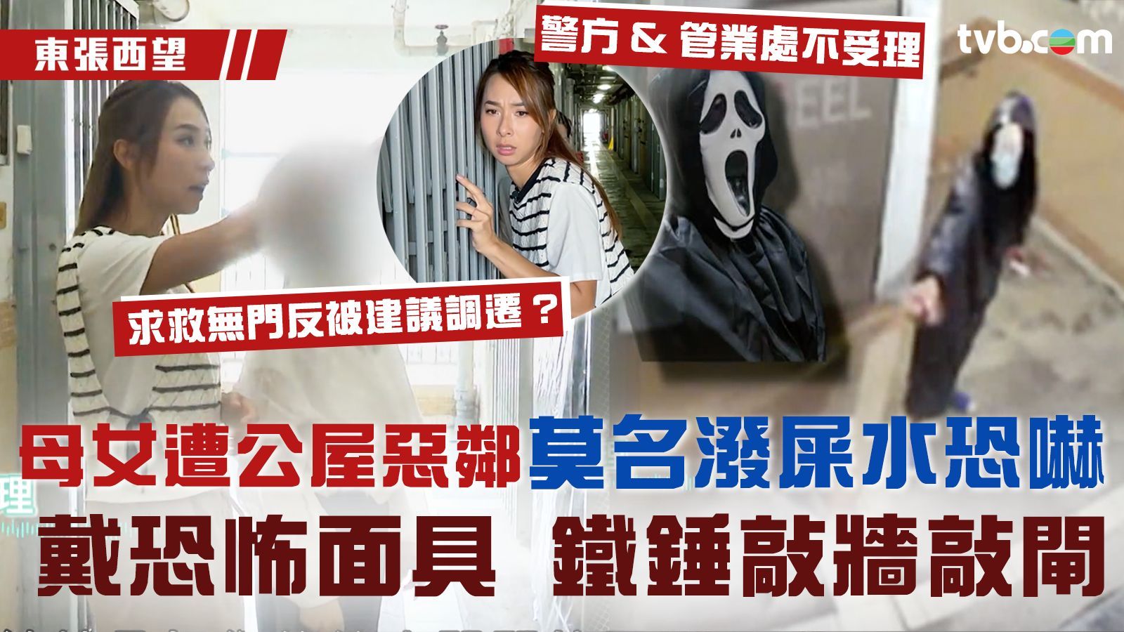 《東張西望》昨晚(18日)報道居住在觀塘某屋邨六年的陳女士(化名)與女兒,從今年三月開始慘遭樓下鄰居污蔑噪音問題滋擾大半年,甚至男扮女裝戴恐怖面具向陳女士單位潑屎水、用鐵錘狂敲閘門、關閉水閥等惡劣行徑,兩母女日日提心吊膽,精神緊張!