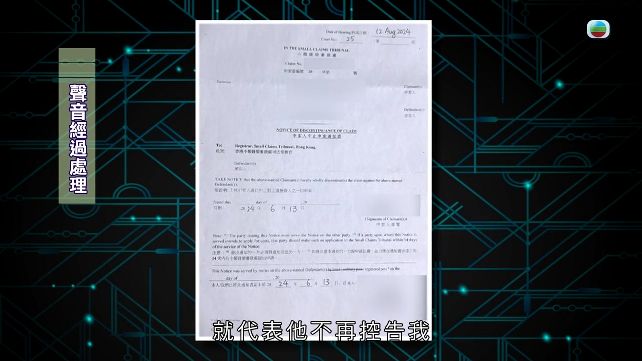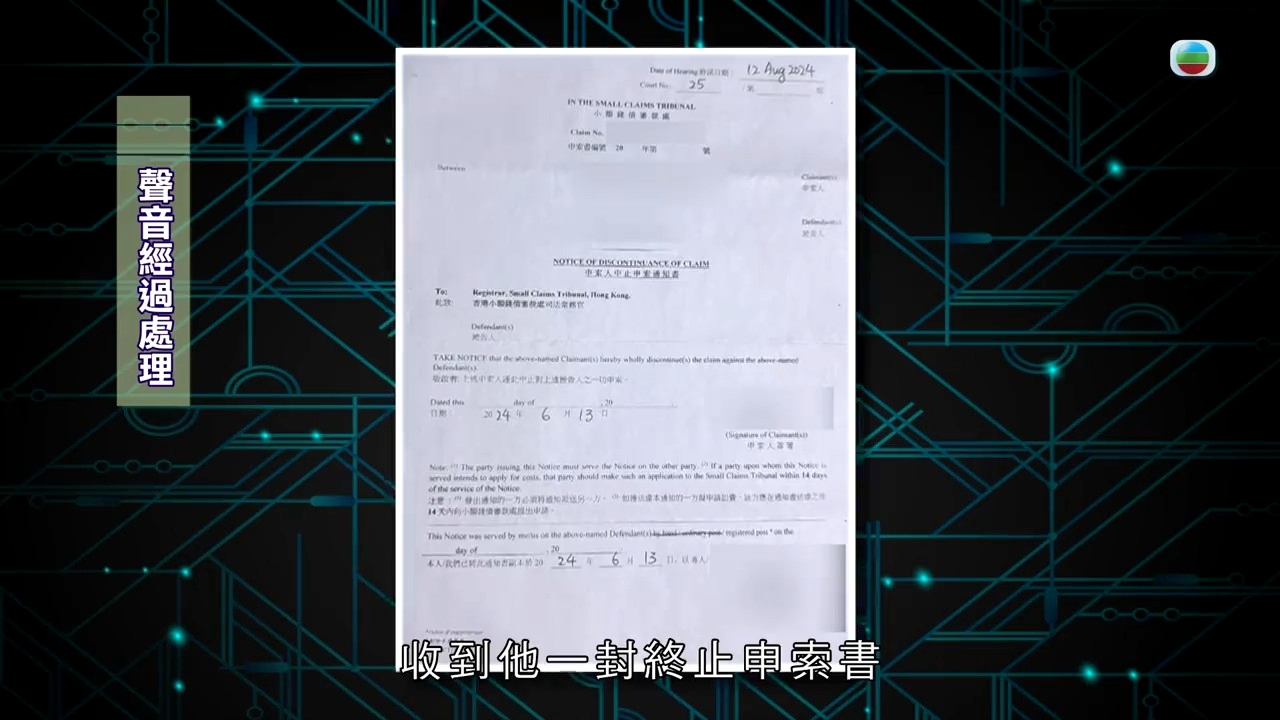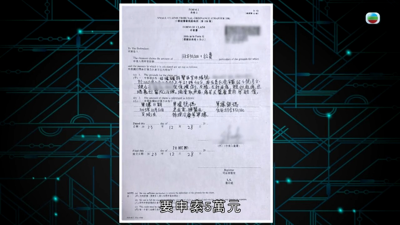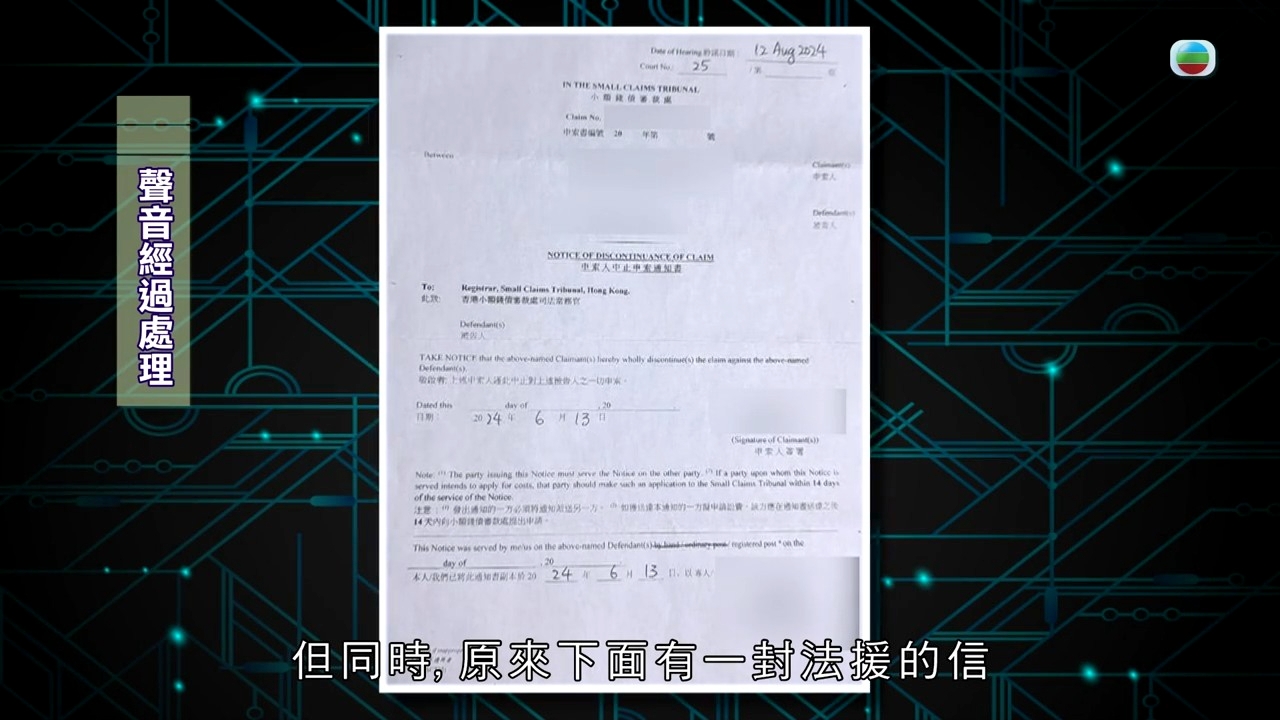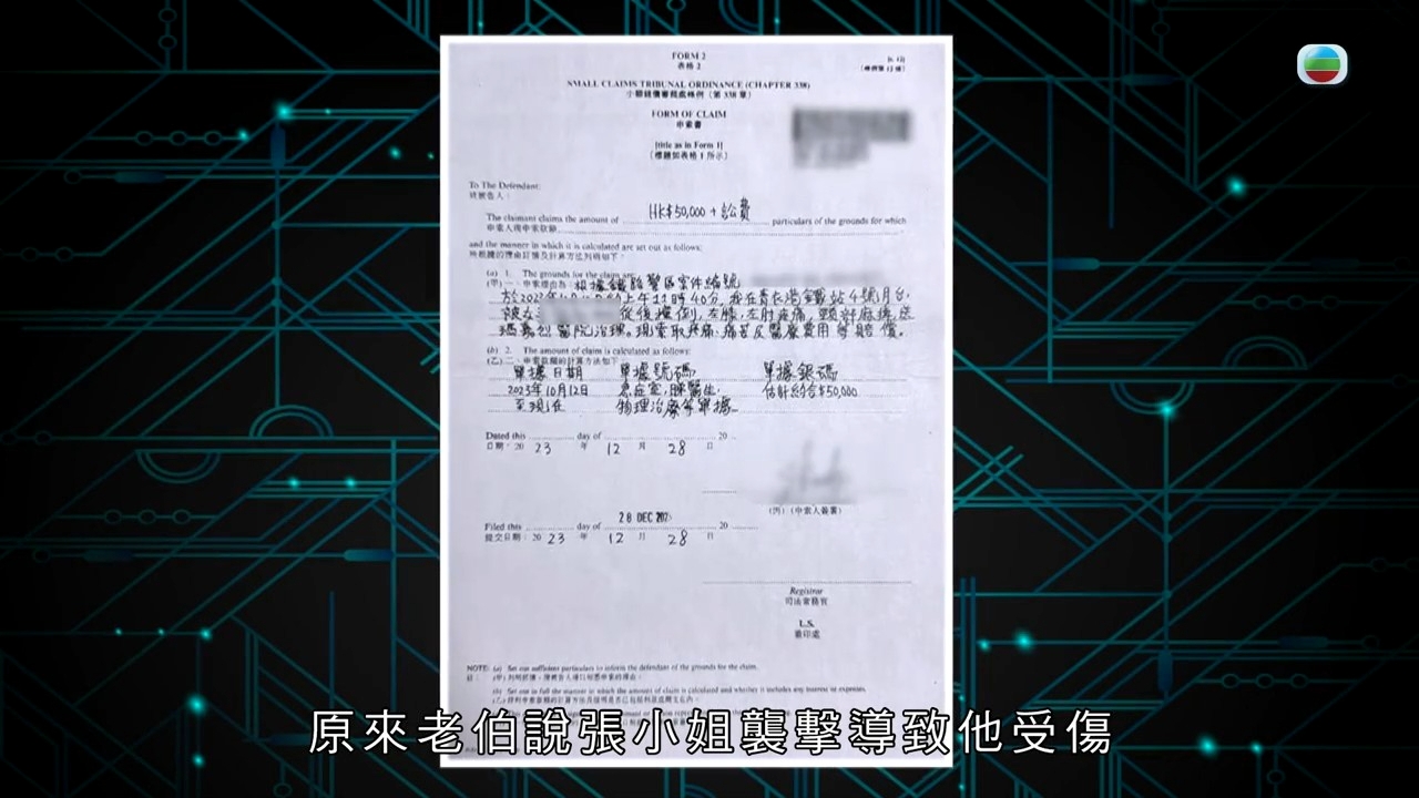 張小姐回到家,以為事情已告一段落,卻沒想到在兩個月之後,竟收到小額錢債審裁處的信,原來是阿伯要向她索償五萬元!上庭的時候,法官要求雙方提供更多證據,會押後判決,張小姐非常無奈:「離開的時候,他(阿伯)有拉我進房間再談,我有很直接地跟他解釋過,當時我真的在你身邊想要照顧你,為什麼你要告我呢?如果我照顧你之後,你還是要告我,你會不會覺得對我很不公平?他和我說,當時我暈了6秒,你怎麼說都行,我覺得你一個暈了的人,怎麼會知道自己暈了6秒?」阿伯而後又改了口吻,說自己其實看了醫生,做了物理治療,讓張小姐賠三千元了事,但對「甚麼都沒做,只是處於好心幫人」的張小姐又怎麼肯莫名其妙給這三千元?直至今年6月,張小姐正式收到阿伯的終止申索書,以為今次真是告一段落的張小姐卻怎麼也沒想到,這份信的下面還有一份法援信,原來阿伯只是終止了小額錢債的申索,但就找了法律援助署來控告她,令張小姐心力交瘁。