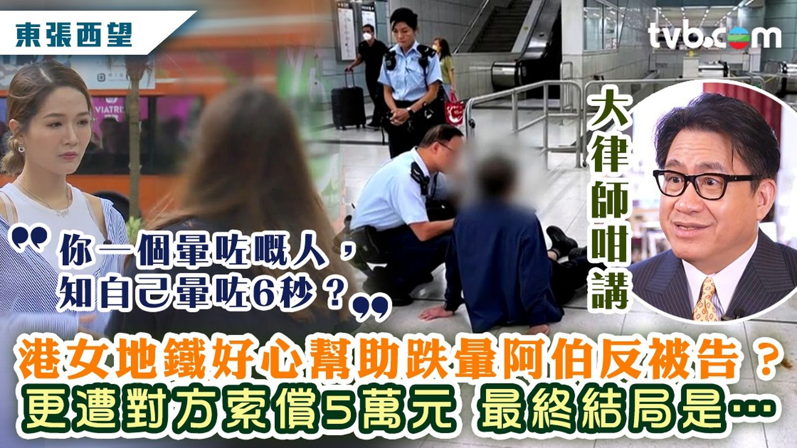 東張西望|港女地鐵好心幫助跌暈阿伯反被告?更遭對方索償5萬元!最終結局是⋯大律師咁講