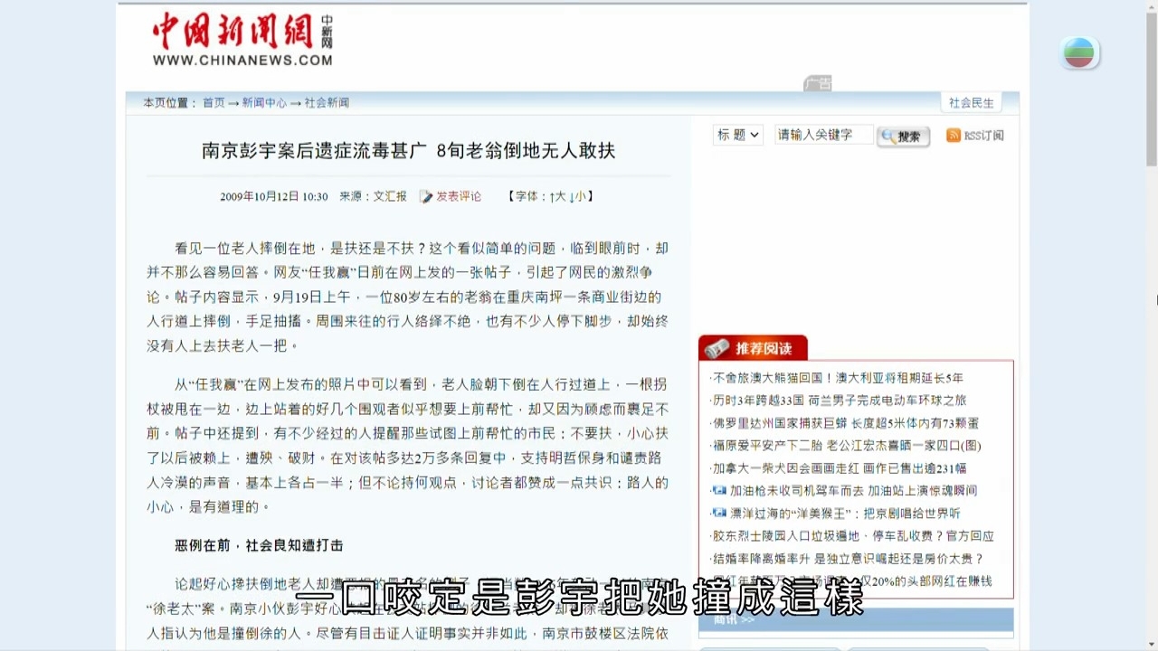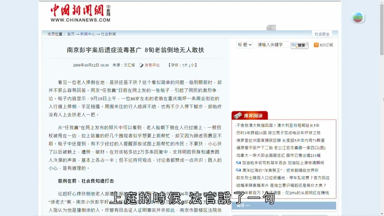 這單案件不禁令人想起2006年的「南京彭宇案」,彭宇扶起跌倒的婆婆送她入院,卻被反告是撞跌她的人,法官更在裁決時說了一句:「不是你撞人,為什麼要扶」,判斷彭宇為過錯方,要求其賠償四萬五千元給婆婆。事件發生後,成為社會熱話,市民們紛紛表示很怕自己撞見「碰瓷黨」或是不講理、扭曲事實的人,坦言如果真遇到這種事,不一定會伸出援手。一些「老鼠屎」造成這樣的社會風氣,讓大家不敢再幫人,確實令人心寒。