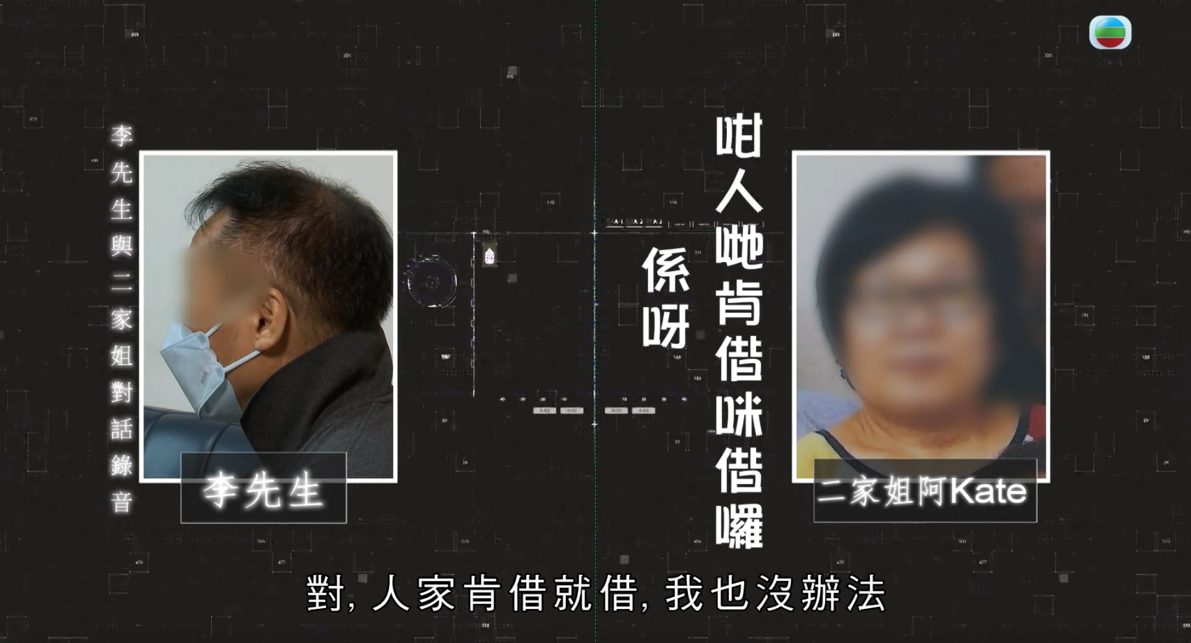 其後阿Kate更將患認知障礙母親的住所抵押給財務公司貸款250萬元!節目組公開李先生與二家姐阿Kate的電話錄音,阿Kate表示:「我由頭到尾都問阿媽借,唔係呃佢錢。如果唔信,就喺家事法庭上見。」對話中她承認將李婆婆的住所抵押給財務公司,不斷借錢竟然是為了一人:「因為要交稅,你知唔知佢收入幾多?個project係7,000萬歐羅(約5.91億港元)。」而這個人是阿Kate在澳洲留學期間認識的意大利籍男子,二人相識近40年,該男子2019年開始向其所要巨款。![]()