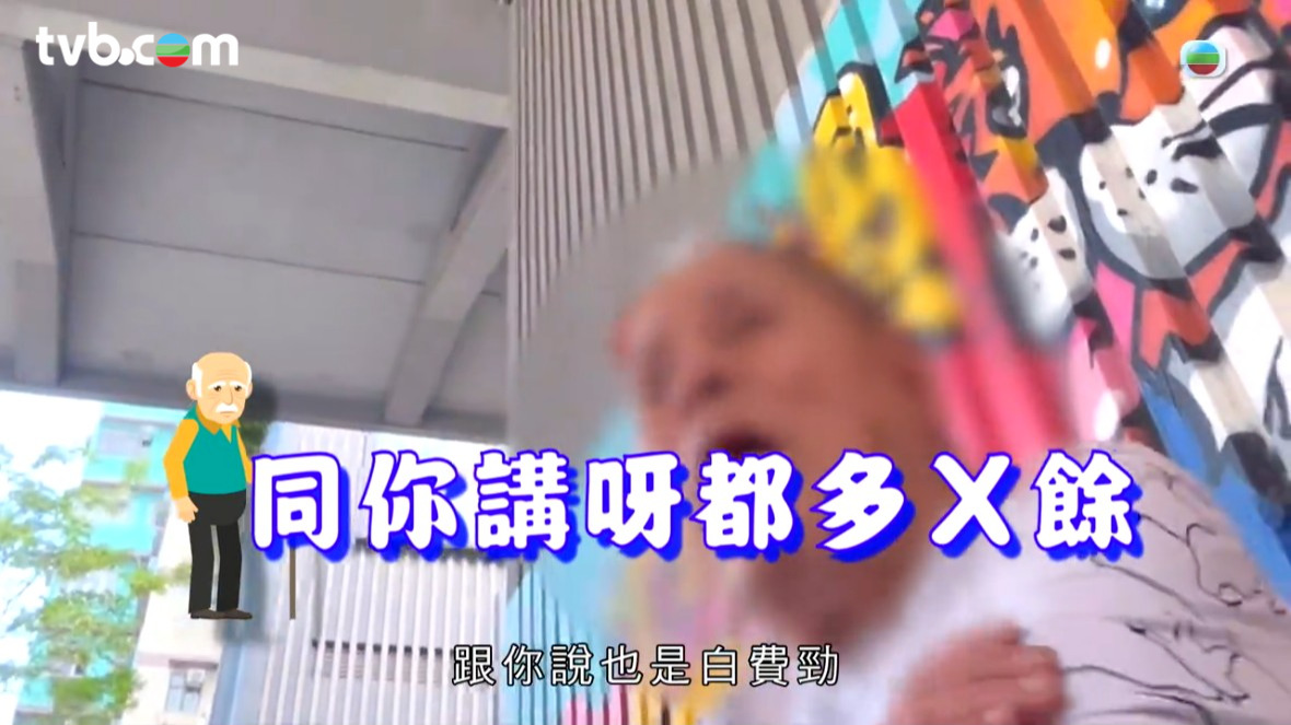攝製組之後又再派男同事去訪問伯伯,對方聽力突然突飛猛進,態度明顯不同。男同事問道:「咁你有無摸啲女仔」伯伯回應:「啲人行嚟就一定會掂到,畀條路行下,(有冇出聲講?)冇,我唔出聲,唔使理佢,鍾意畀人講咪畀人講,唔同佢講。(你覺得自己係咪掂到人哋?)同你講呀都多X餘。」![]()