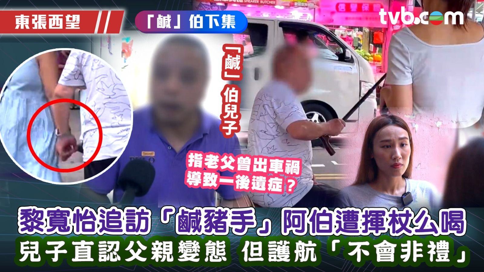 《東張西望》昨晚(24日)繼續報道土瓜灣「鹹豬手」老伯事件,「貓仔」黎寬怡出動追訪阿伯,對於被多位女街坊指認扮不小心接觸她們的臀部及胸部,伯伯最初說:「講大話」,再到表示自己聽力比較差,最後更情緒激動舉起拐杖,疑似有所動作。為免再刺激對方,貓仔只好暫時離開。