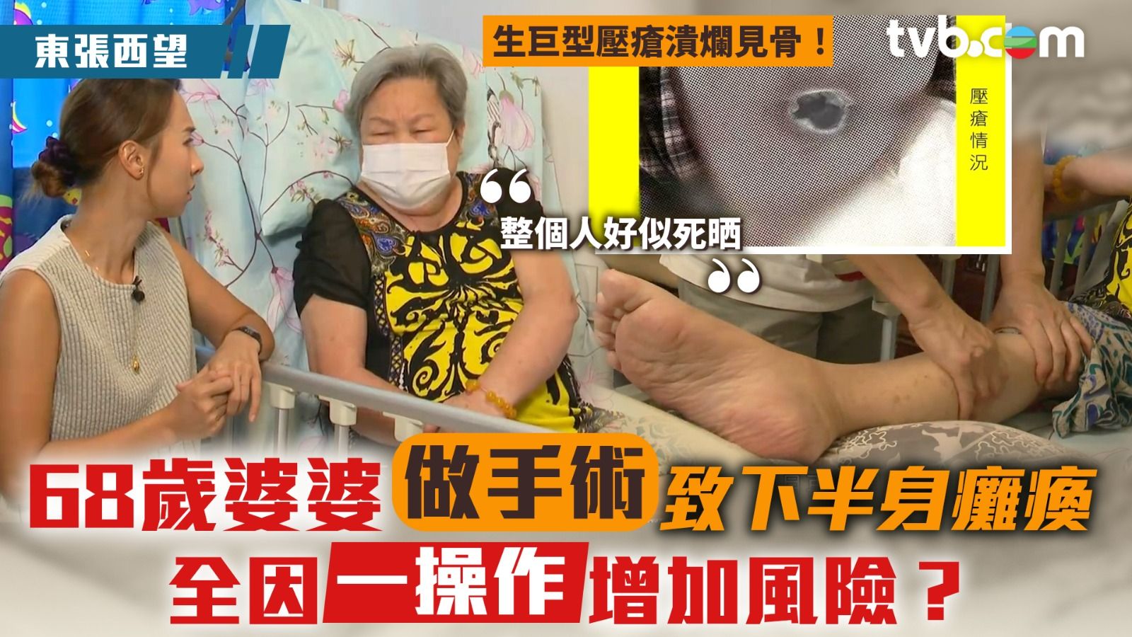 怎料,手術後容姐發現下半身沒有知覺,相隔不到兩日,醫生更建議做第二次手術。但手術後情況並無改善。由於長期臥床,容姐還出現嚴重壓瘡及天皰瘡,令其非常痛苦。專家強調頸椎胸椎兩個手術同時做,風險一點都不小!而《東張》攝製隊就事件聯絡涉事醫生,對方則透過護士回覆表示不會回應。容姐至今下半身仍全無知覺,現時努力做物理治療,以及不同方法刺激雙腿,希望可以康復。