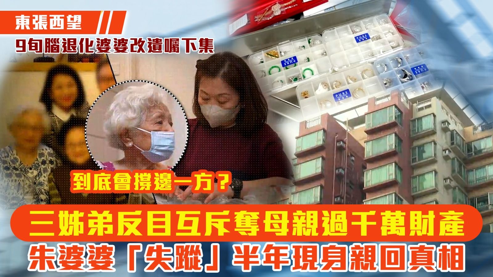《東張西望》早前(12日)報導一名90歲、患有腦退化症的婆婆育有四名子女(長女早年離世),婆婆2022年突然更改遺囑,將元朗物業轉至三女與及增加其遺產份額,令三姊弟反目,更互斥對方欲私吞婆婆價值過千萬元的兩層物業、股票存款及首飾。