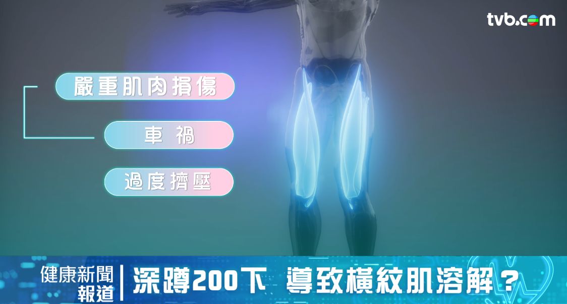 橫紋肌溶解症|很多人都愛做運動,而深蹲可以訓練大腿、臀部,所以是常見的健身動作。但有一名小朋友因為深蹲而患上橫紋肌溶解症!《健康新聞報道》今次為大家拆解這宗案件,到底甚麼是橫紋肌溶解症?