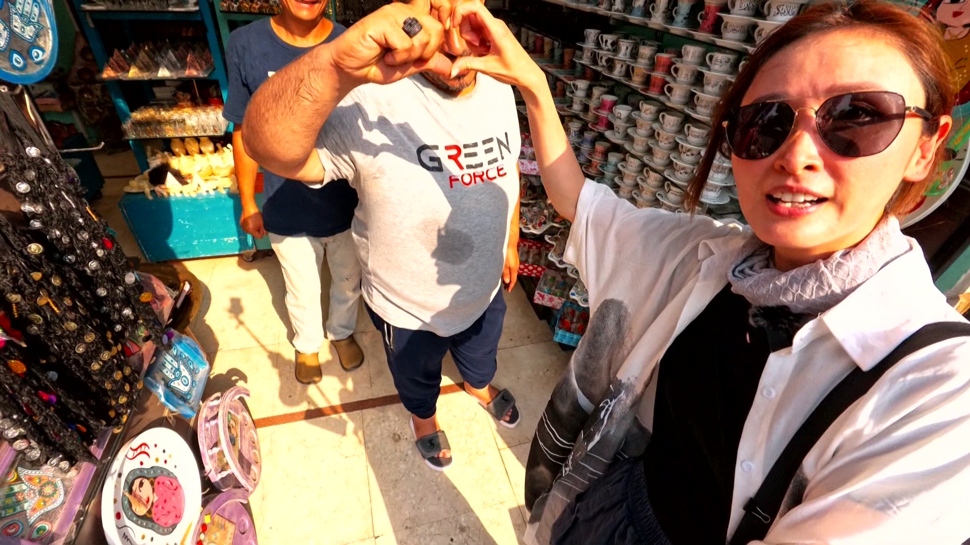 Janis還遇到大量操流利普通話的埃及人,他們除了大方向Janis表達對中國人的歡迎和熱愛外,還有店主與Janis合力比心,氣氛相當好。![]()