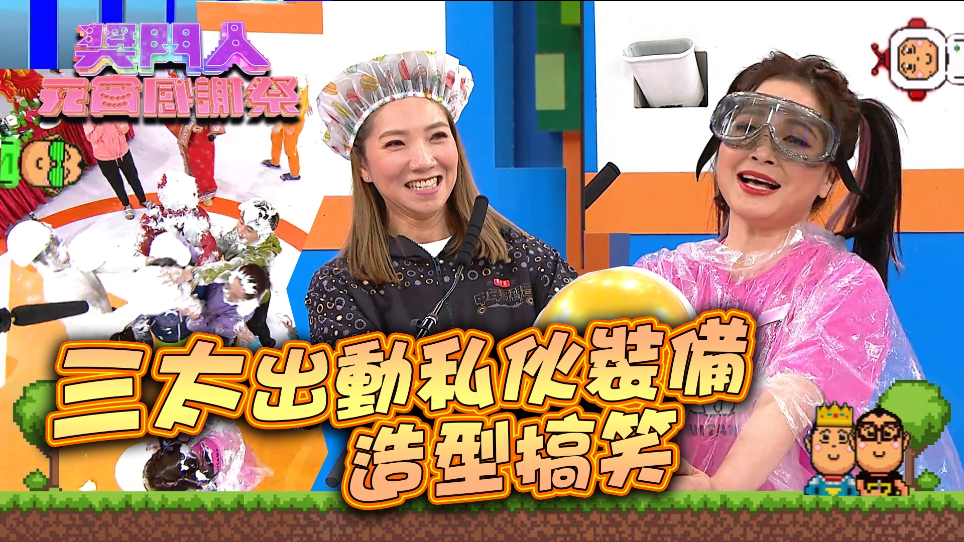 在「開心無敵開口中」和「開心無敵彈遮遮」中,三太再度出動私伙潛水泳鏡和巨型太陽帽,婉婉則戴浴帽應戰,造型搞笑。
