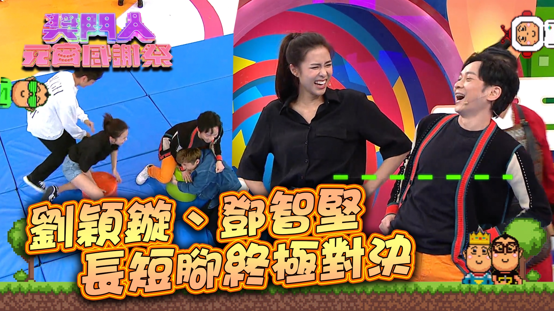 「開心無敵爭櫈仔」環節則繼續肉緊,當中以長腿女神劉穎鏇(Tiffany)最為搶焦,短打上陣的Tiffany打女上身與振朗爭櫈仔,搶到瞓晒地亦在所不惜,最終竟成功揮贏振朗!Tiffany最後與鄧智堅上演「長短腳終極對決」。