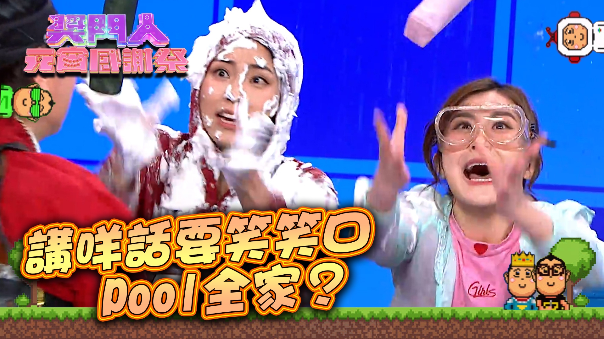 【獎門人元宵感謝祭】首個遊戲「開心無敵落大閘」,普通話出名水皮的黎諾懿大晒港普玩自抽;拍住上的Moon 和張振朗則表情與動作均是「神同步」、默契十足。向來擅長食花生的製作組,其中一條題目竟是「魔音」,醒目的Moon見狀即九秒九指向郭柏妍,被「擺上枱」的郭柏妍則露出天然呆表情。