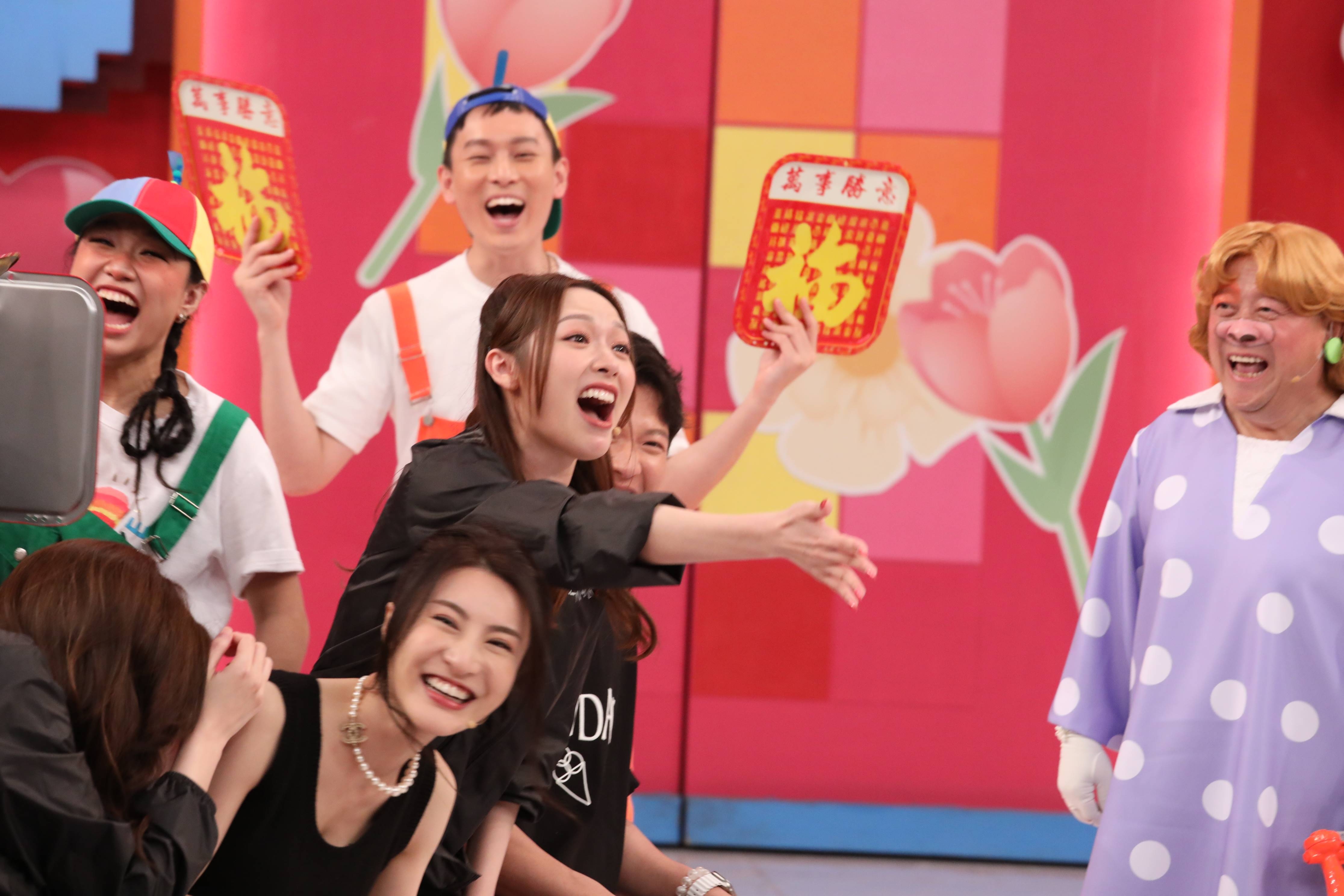 今晚一眾嘉賓玩得十分落力,在「開心無敵落大閘」中,展鵬和薇薇組成最強視帝視后組合,兩人玩遊戲時默契十足, 除了多番神同步,展鵬還鬼馬地扮「色狼」撲向薇薇;薇薇則跪地、趴地完全零介意,相當玩得。