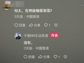 延伸閱讀:東張西望|疑似何太內地社交媒體帳號曝光 做愛情語錄大師 稱考慮與老公「生翻件」 將離開傷心地