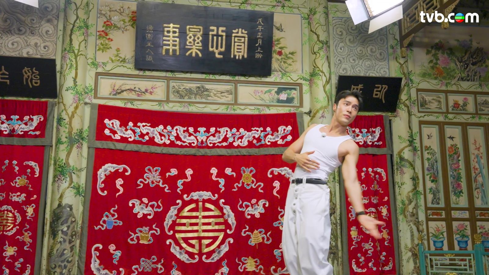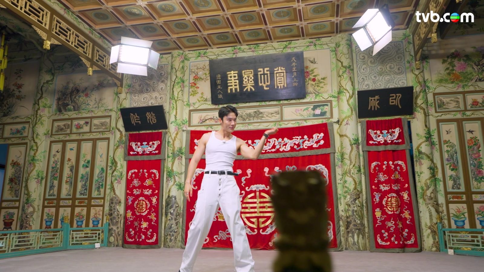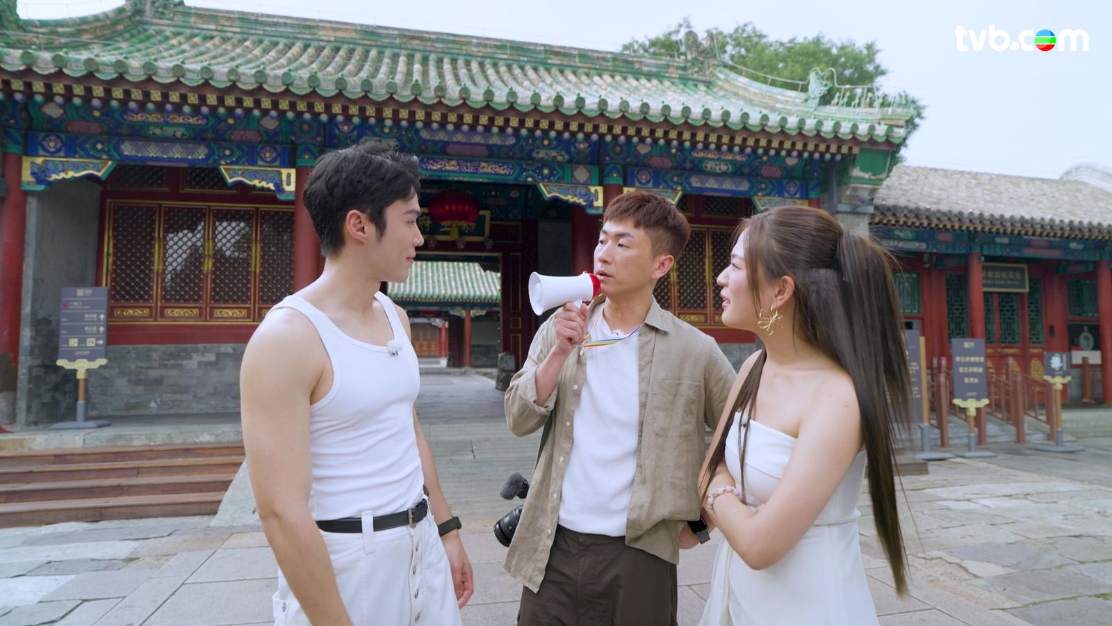 丁子朗向來身材健壯,不時在其他節目大派福利晒肌,今次也不例外;三人主持陣容遊過前門大街後,到訪過素有「京城第一豪宅」美譽的恭王府博物館、以及四合院胡同;三位主持雖有默契一同穿上白色襯衣,但丁丁的造型相當「犯規」,他上身只以白色底衫上陣;底衫完美展現出丁丁傲人上圍,胸肌若隱若現,手臂肌肉線條更是無限放送,可算是間接大派福利!