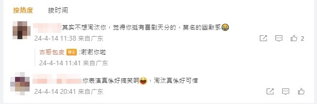 近日「古惑包皮」再次發功,於微博上載與真.包皮林曉峰合照,並留言:「古惑包皮與包皮本尊的夢幻聯動」及「見到了模仿的包皮本尊!現實中真的是很和藹,很優秀的一個人。」「古惑包皮」還留言指,與林曉峰的合照,是其人生中第一張與明星的合照。合照所見,林曉峰友善地搭着「古惑包皮」膊頭,「古惑包皮」則舉V露出靦腆笑容,大晒萌爆可愛面!有網友留言指對於「古惑包皮」早早被淘汰感到不捨,並留言:「其實不想淘汰你,覺得你挺有喜劇天分的,莫名的幽默感」、「你表演真係好搞笑啊,淘汰真係好可惜」,「古惑包皮」亦逐一回覆答謝網友支持。