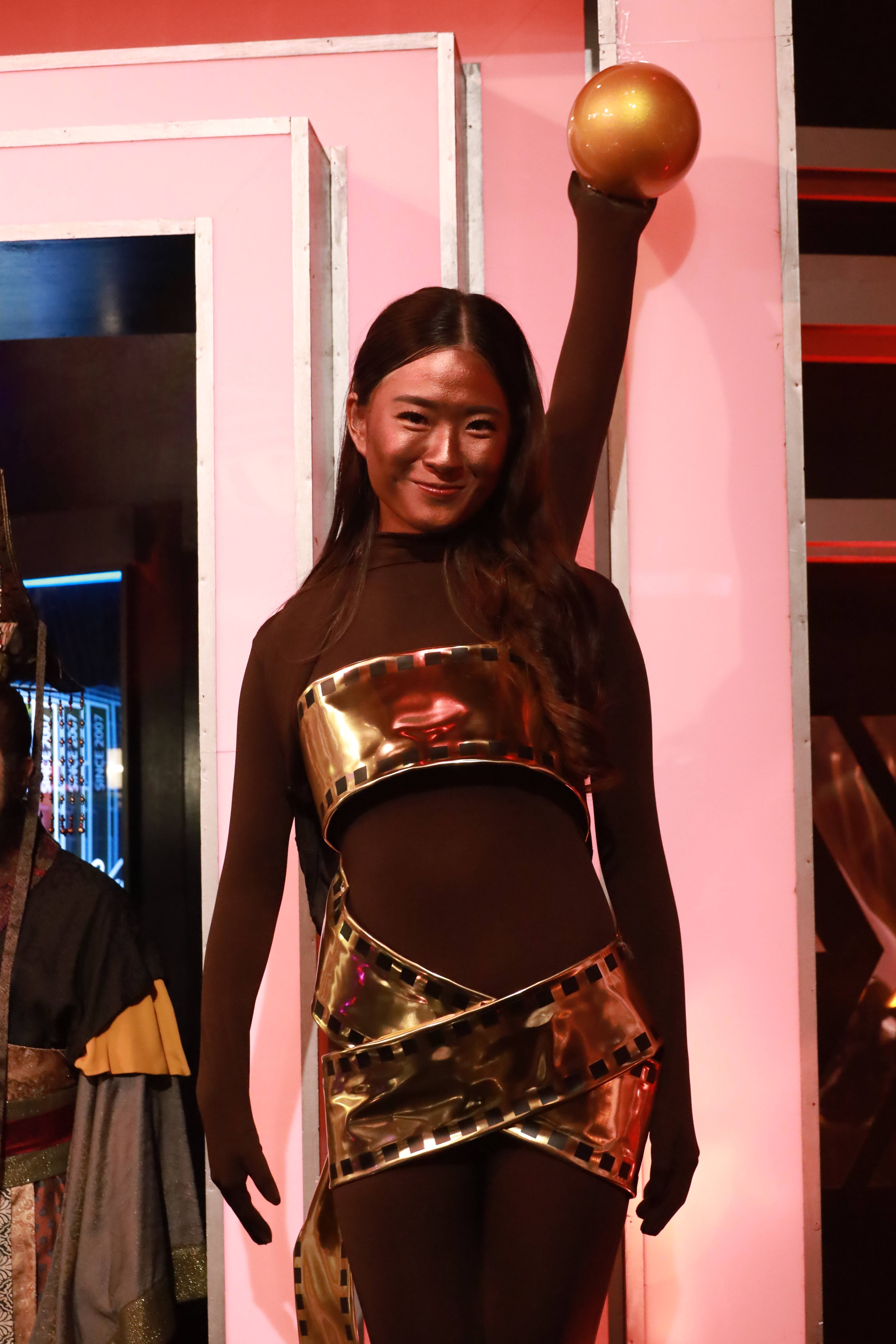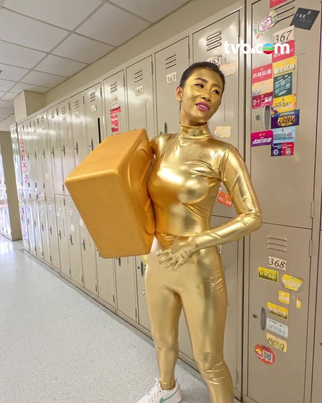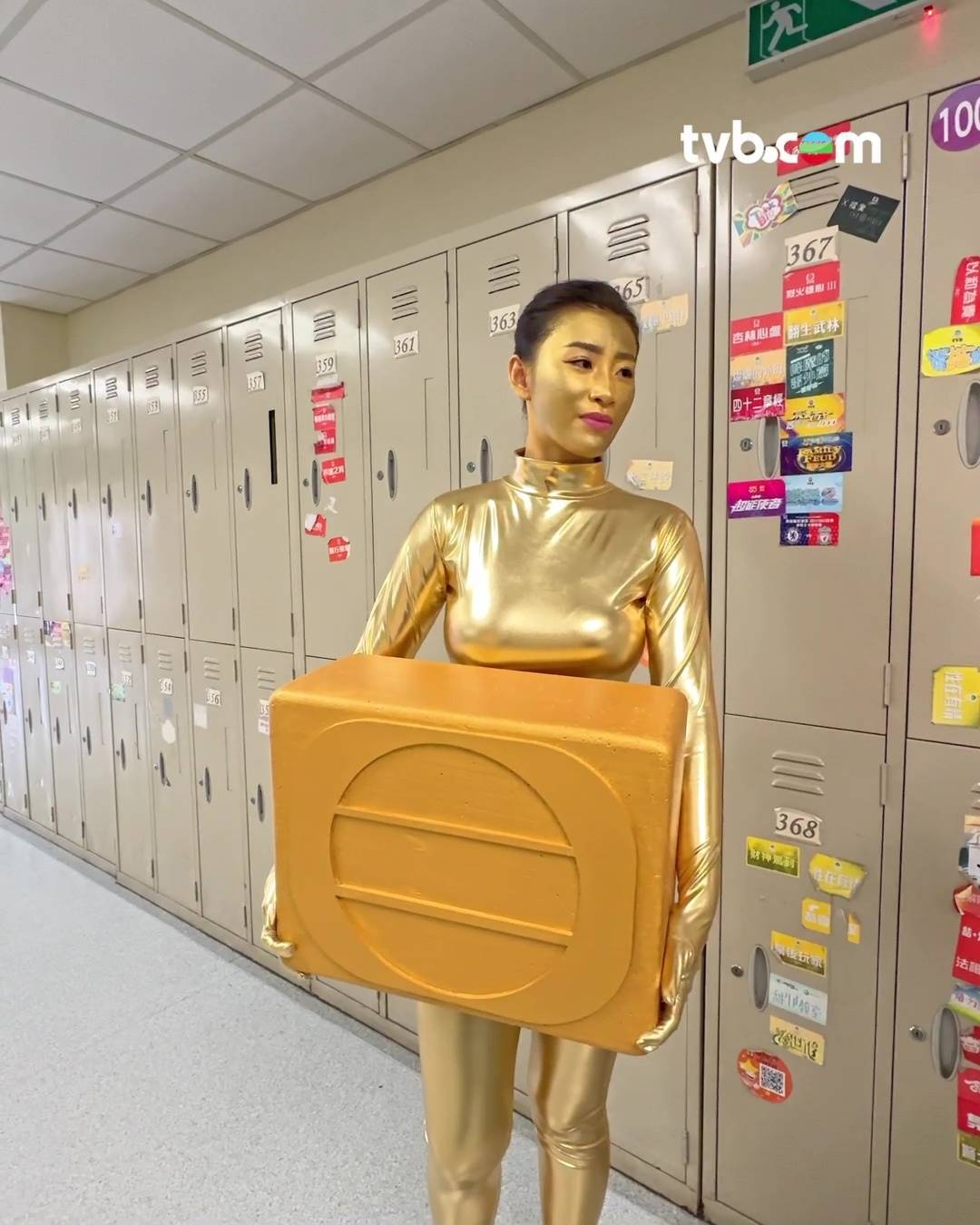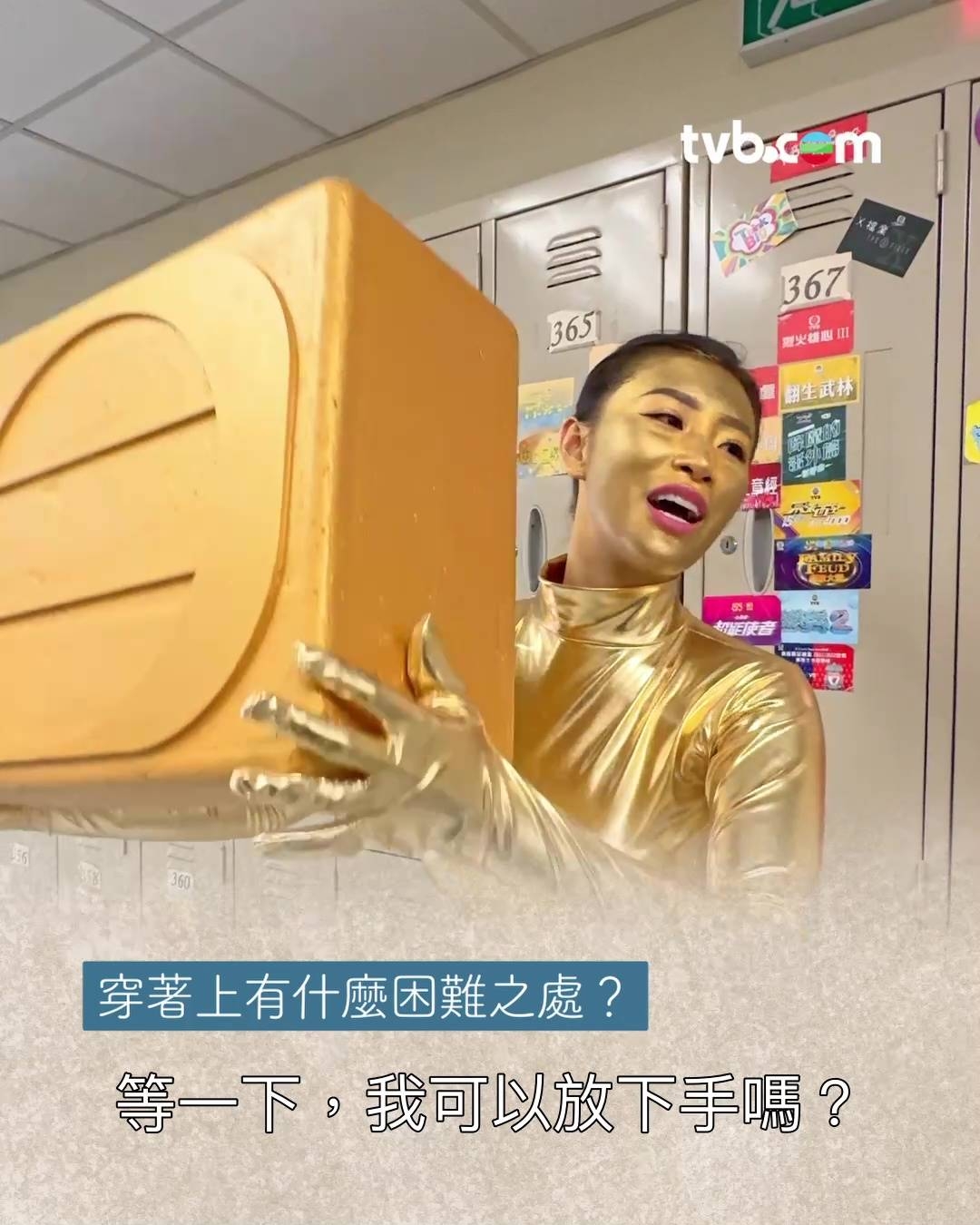 而在第一、二集扮「碌竹」的德德,今集獲製作組貼心照顧為其度身訂造「假手背囊」,好讓德德肩頸得以休息,令德德大呼感動:「製作組驚我個膊頭同條頸太攰,所以就為我設計咗呢隻假手,等我唔使將隻手舉足十幾個鐘咁辛苦。但原來佢都幾重同幾掗拃,我頭先喺走廊都唔小心攻擊到幾個路人,工作人員笑我係『最強武器』。」談到打造造型過程,德德坦言單是為身上的金色菲林「定位」已花掉兩小時:「總共有幾個姐姐係咁釘釘釘,我都有意外被拮咗幾吓,好難先可以令到啲菲林fix到位。」德德續指著衫及除衫亦是十分艱難:「除衫都要幾個人幫手,好似金蟬脫殼咁,著嘅時候又係四、五個服裝姐姐一齊出力、幫我將件衫轉轉轉番上去。」德德續指由於造型相當難搞,故此她亦盡量少飲水避免去洗手間。