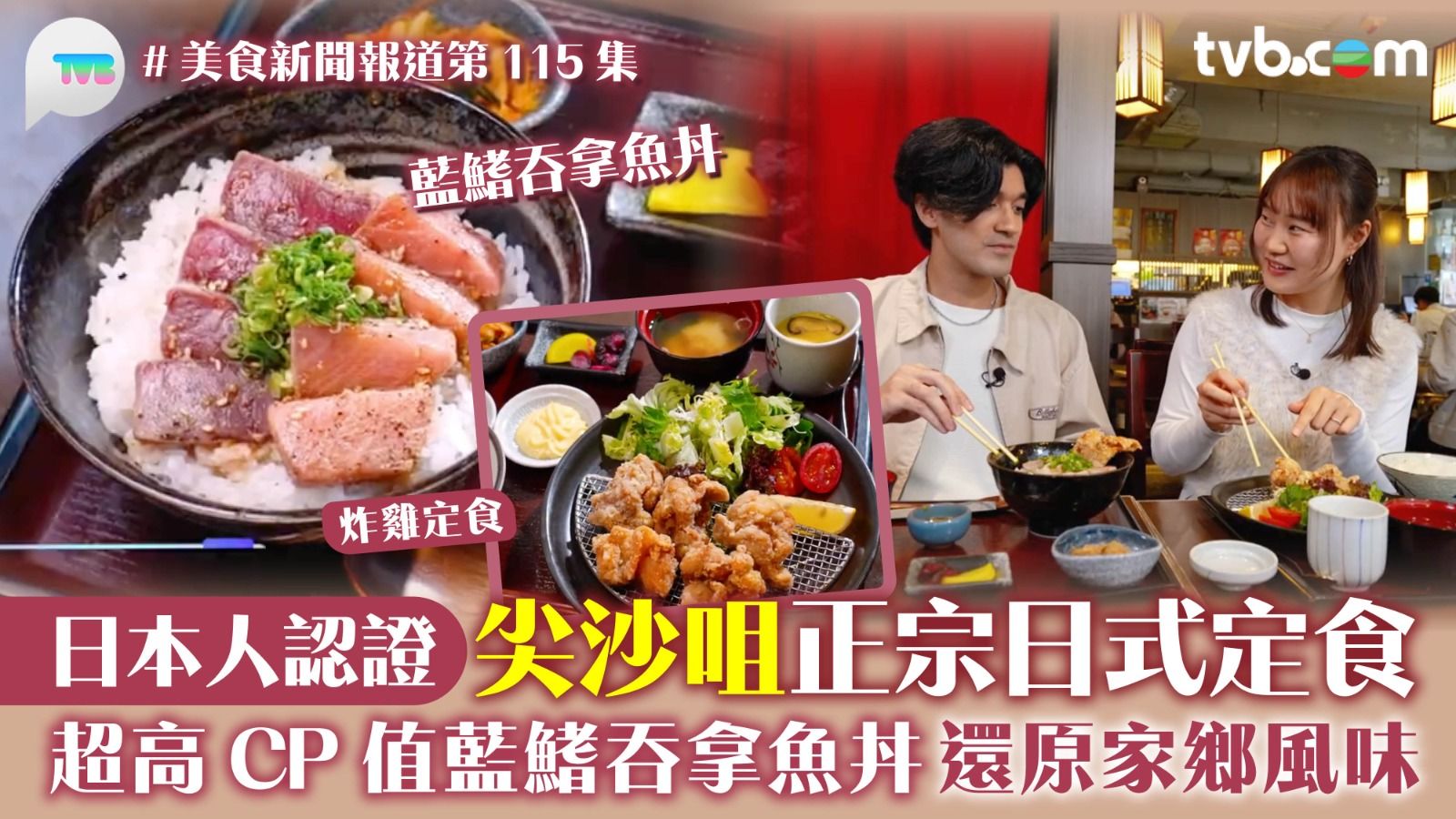 定食即三餸一湯,包括米飯、主菜、漬物和湯,是日本餐桌上最為經典的飲食型態。今集《美食新聞報道》由埼玉縣出身的居港日本人Nami帶主持布文樂(JB)去到尖沙咀厚福街覓食!Nami形容定食是打工仔的「精神料理」,一個星期可以食足五日,全因它每日都會更換推薦定食,例如燒魚定食、生薑炒豬肉定食等。而這間定食餐廳的招牌則是藍鰭吞拿魚,Nami表示餐廳老闆以前從事吞拿魚批發,因此店內的藍鰭吞拿魚CP值非常高!