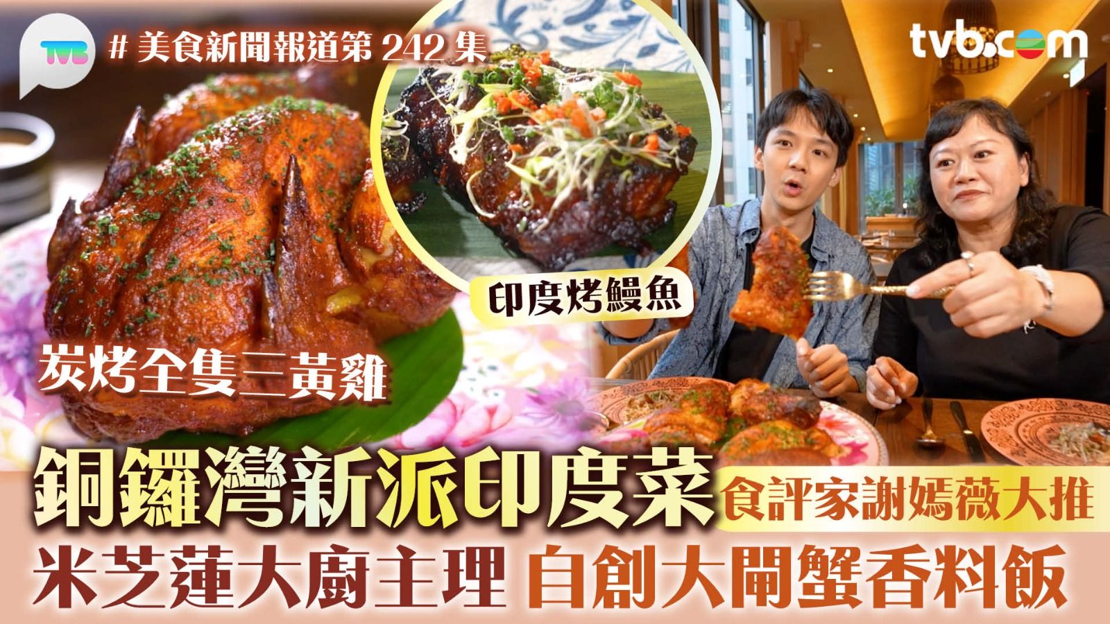 《美食新聞報道》今集謝嫣薇(Agnes)帶施焯日(Arthur)到銅鑼灣,試食米芝蓮大廚主理的新派印度菜!必食全球首創的大閘蟹香料飯,大廚用印度香料炒蟹粉,味道令人驚艷!另外,炭烤全隻三黃雞用了18種香料醃製,皮脆肉嫩。烤本地大尾魷肉質彈牙,香辣惹味。印度烤鰻魚外脆內軟,入口肉汁豐富。Agnes大讚這每道菜式心思十足,將傳統印度風味昇華到另一層次!
