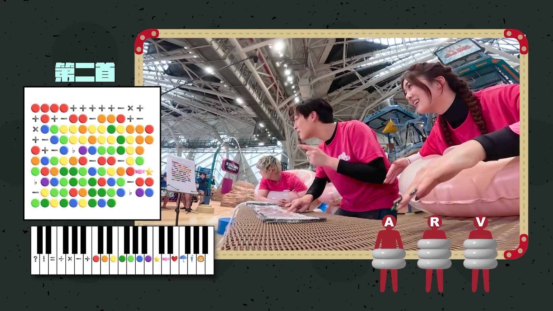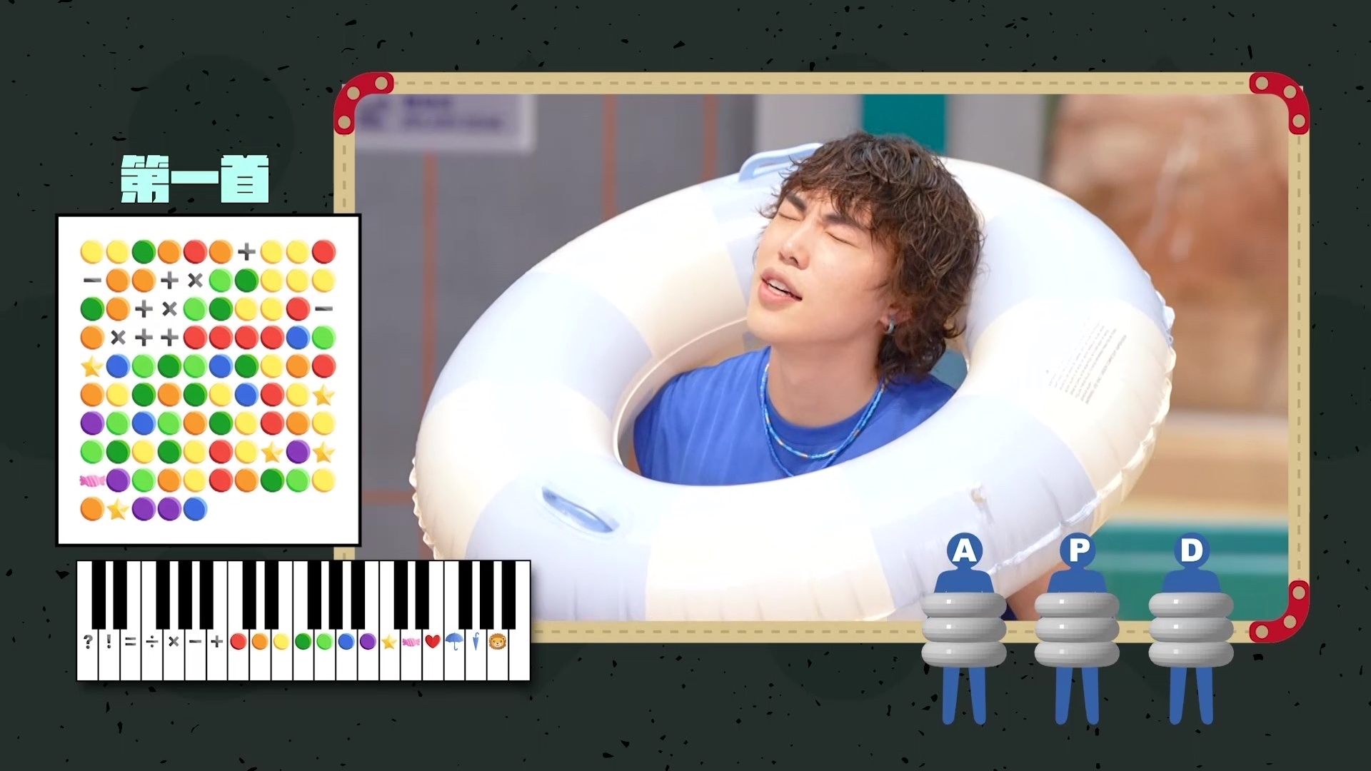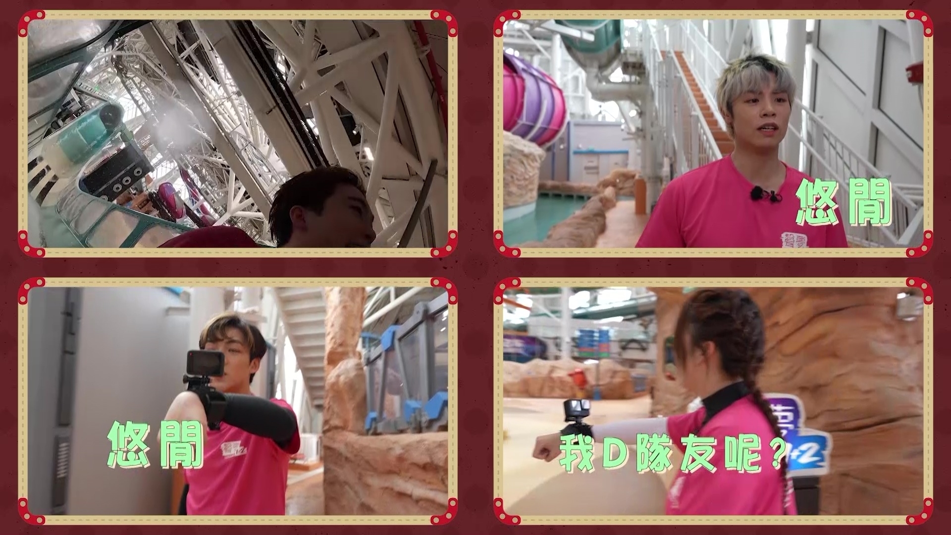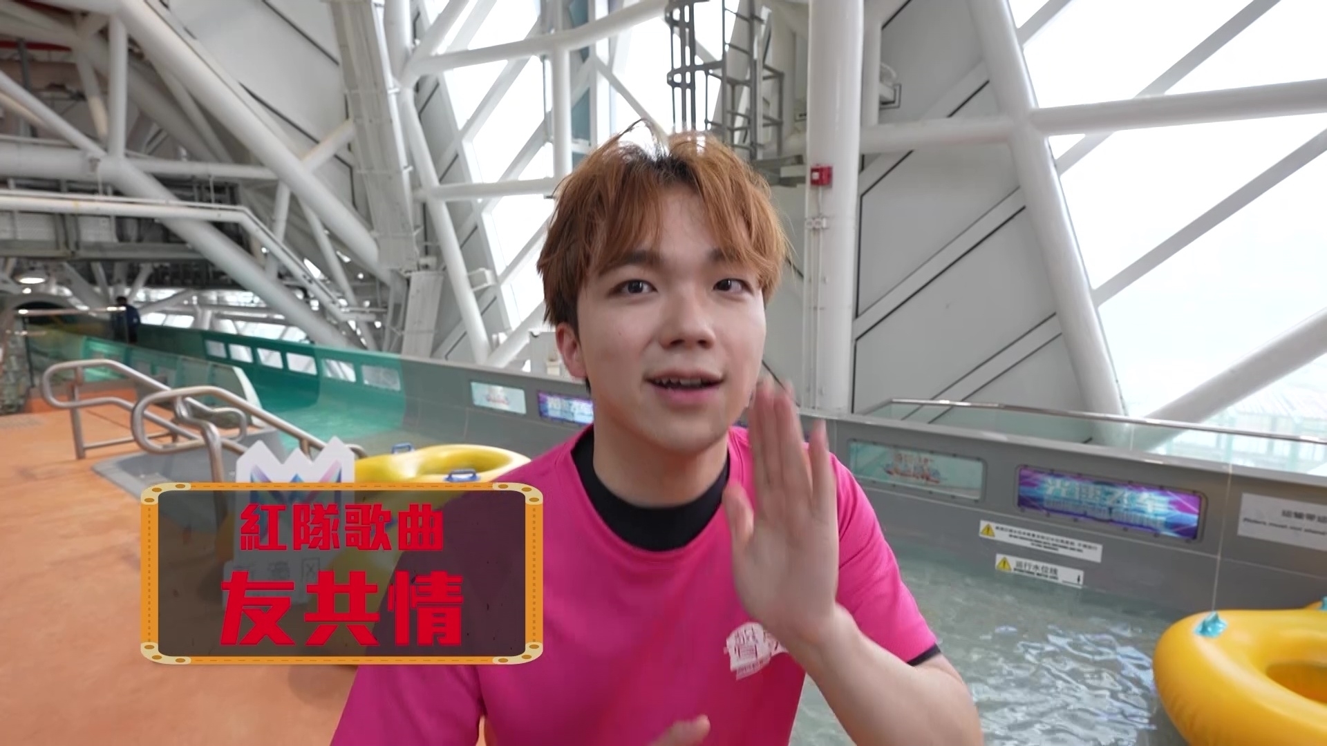 不過講到最刺激,必定是「你估我唱乜」,每隊派出一隊員/隊長在滑道上高歌,其餘三名隊員分別站在不同的遠距離位置收聽後,再趕往集合討論是哪首歌。紅隊派出Angel邊坐橡皮艇邊獻唱《電燈膽》,可惜卻因為一個原因要「重賽」;另邊廂藍隊的Rock需獻唱《友共情》,隊員聽畢趕著前往討論之際,隊長Archie卻滋悠淡定慢慢行,盡顯「胸有成竹」一面……