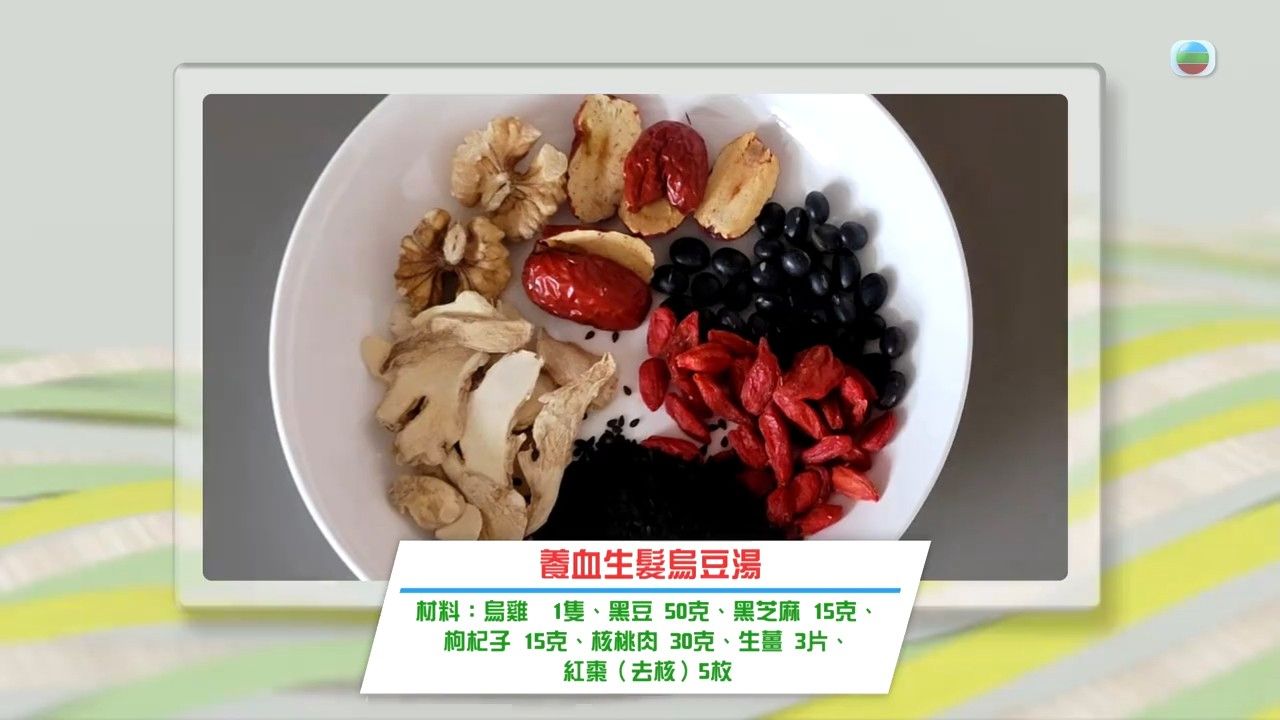 李景群中醫師今次推介養髮湯水「養血生髮烏豆湯」,一星期可飲一至兩次,不過易長痘、頭油過多、大便黏膩人士就不建議飲用太多養血生髮烏豆湯。