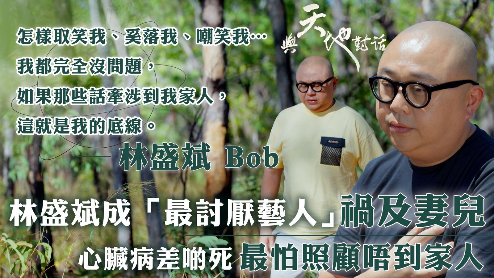 與天地對話|林盛斌成「最討厭藝人」禍及妻兒 心臟病差啲死 最怕照顧唔到家人點讚分享撰文:PA_FAFA 發佈日期:2024-11-29 15:00【與天地對話】林盛斌成「最討厭藝人」禍及妻兒 心臟病差啲死 最怕照顧唔到家人|怎樣取笑我、奚落我、嘲笑我…我都完全沒問題,如果那些話牽涉到我家人,這就是我的底線。《與天地對話》林盛斌Bob 雖然成日笑笑口,但原來曾經被網民討厭嘅佢,對於家人受影響一直耿耿於懷,好在囡囡都好乖,識得維護自己爸爸!另一方面重視家人嘅Bob,喺面對心臓病嘅時候,最怕就係照顧唔到屋企人。主持: 姜皓文、林盛斌 Bob、蔡思貝、余文樂與天地對話|星期一至五 晚上 10:30|翡翠台#與天地對話#林盛斌