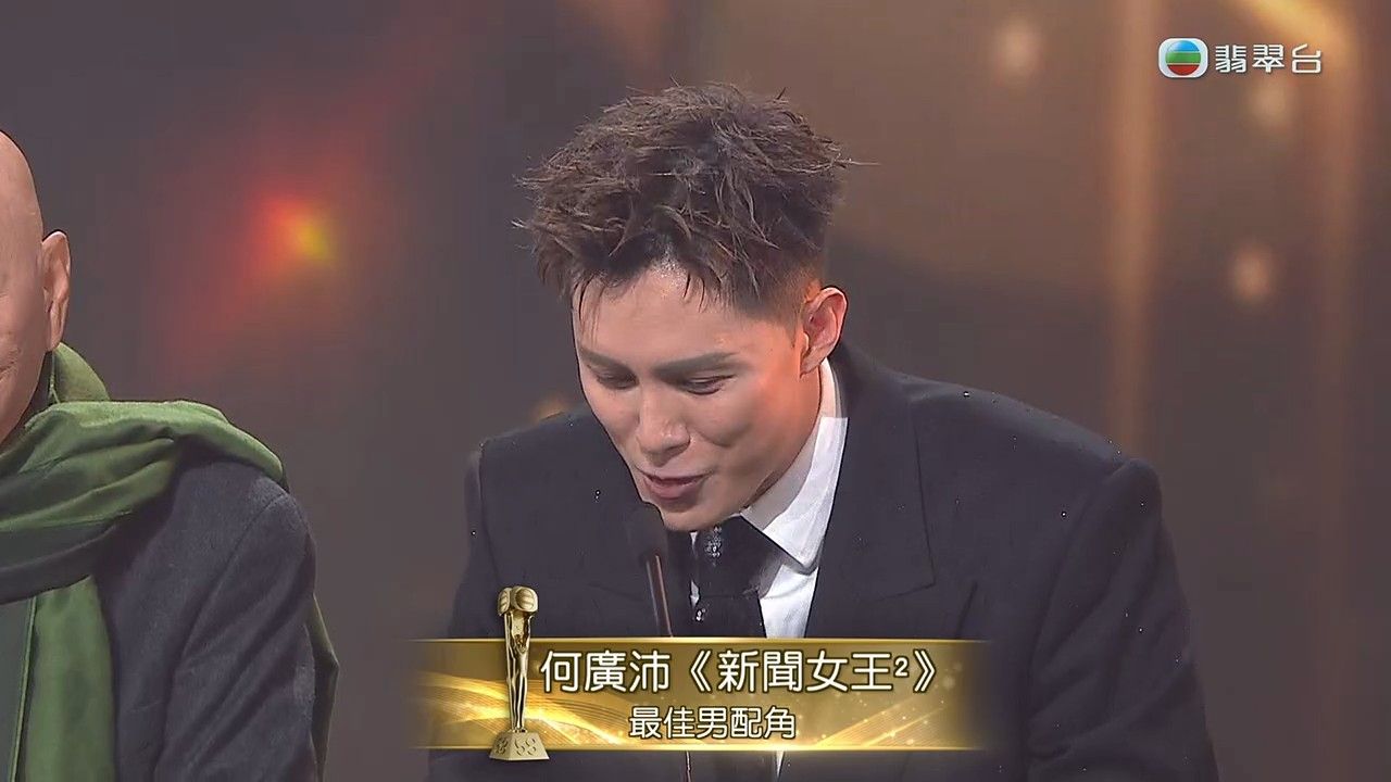 《萬千星輝頒獎典禮2025》今晚(4日)舉行,最佳男配角由何廣沛獲得,佘詩曼暖心送抱抱!