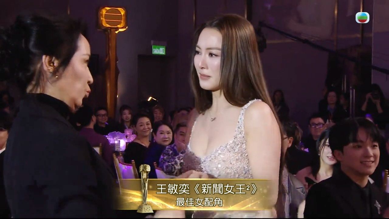 而在宣布得獎一刻,王敏奕亦並沒有立刻走向舞台,而是先走到龔慈恩身邊,向前輩致意,這一幕亦成為網上熱話。