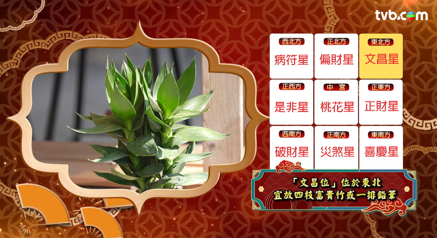 「文昌位」位於東北,麥玲玲師傅指可以在東北位擺放電腦,宜放四枝富貴竹或一排鉛筆。