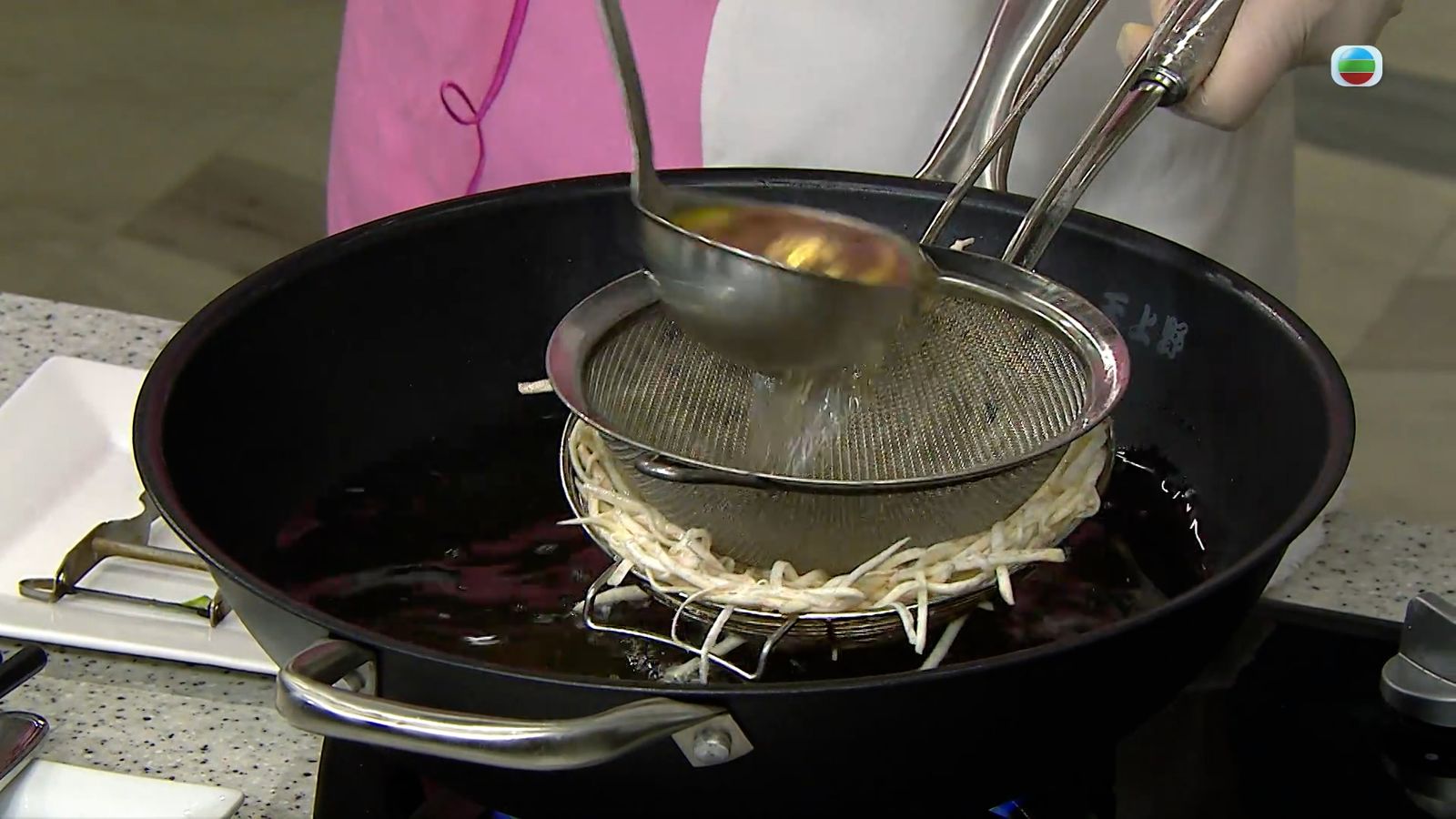 芋盞:芋頭,去皮,刨幼條 300克,鹽¼茶匙,炸粉1湯匙