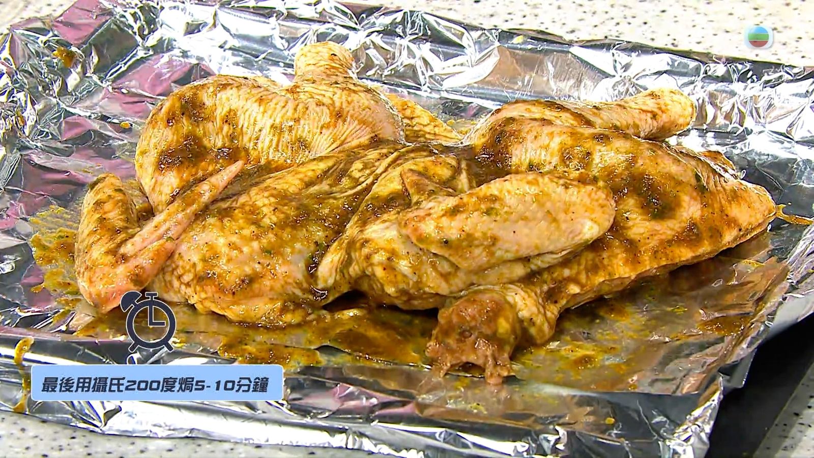 最後用攝氏200度焗5-10分鐘,雞皮金黃就可以喇。