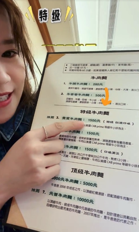昨晚(28日),翠如在社交平台上載與C君、周奕瑋在台北吃牛肉麵的影片,雖然在節目中他們已經介紹過這間位於台北內湖區的「牛爸爸牛肉麵」,但這條私下拍攝的影片更能體現拍攝團隊的心底話!據餐牌介紹,這碗被CNN指全球最貴、標價一萬元台幣(約2,550港元)的「元首牛肉麵」於2007年推出,其設計理念是以挑戰自我為目標,研究出最完美的牛肉麵。作為該店的代表之作,「元首牛肉麵」由三層湯底融合而成:下層冷凍啫喱淡湯、中層濃湯、上層是炒過的紅燒湯。另外,「元首牛肉麵」共有四種肉,均以頂級肉品製作,當中包括澳洲和牛等級的牛小排、美國Prime牛小排、美國安格斯牛肋條和筋肉混合的牛排,處理過程非常費工。![]()