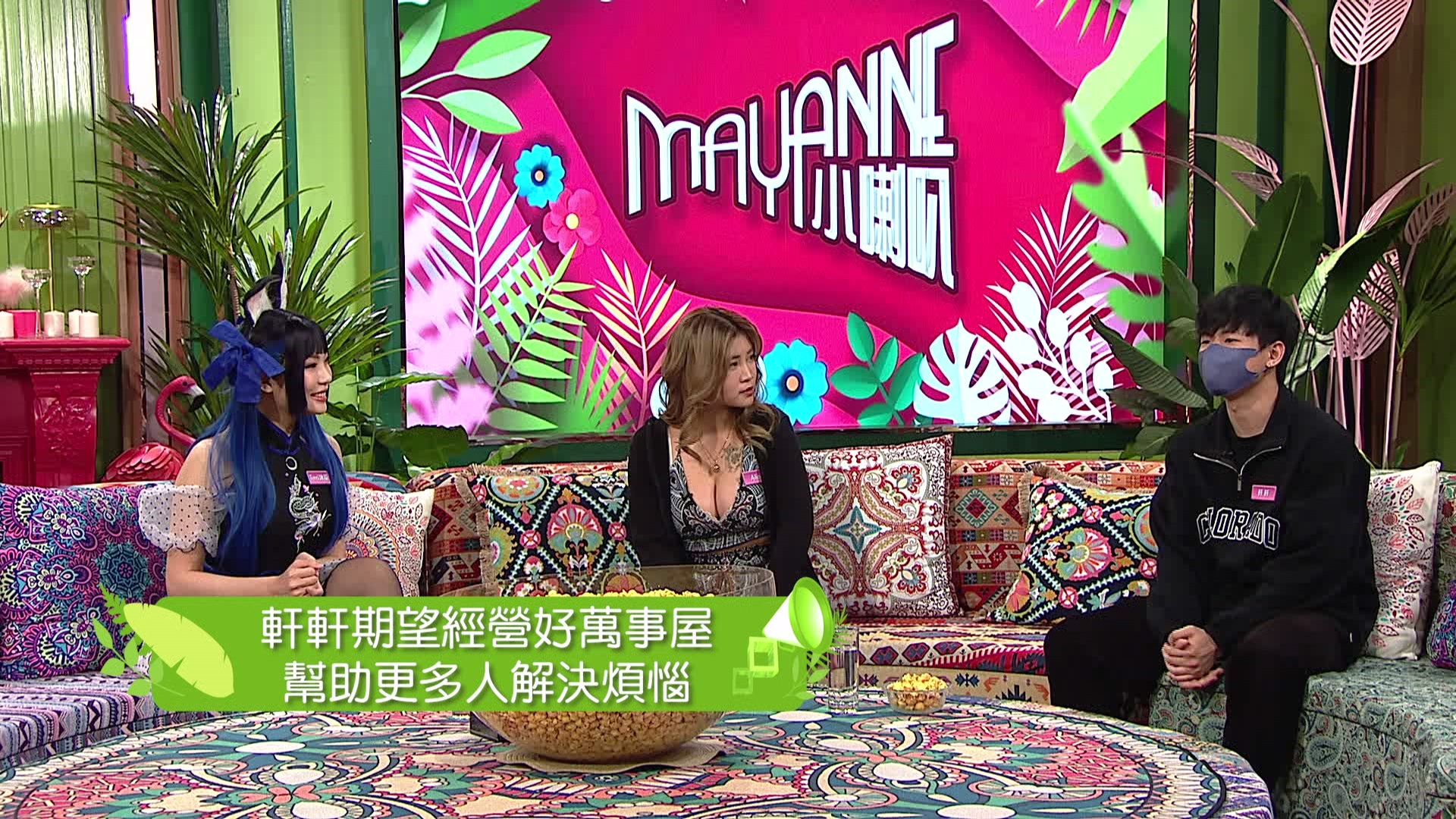 清談節目《Mayanne小喇叭》由麥美恩(Mayanne)擔任主持,曾展望(GM)擔任助理主持,逢周四、五晚10點半翡翠台播映。今晚(22日)一集主題是「罕見職業」,邀來在台灣拍攝AV的女優Alice、全職Cosplayer Terri冰嵐和萬事屋創辦人軒軒擔任嘉賓,大談罕見職業背後的故事。