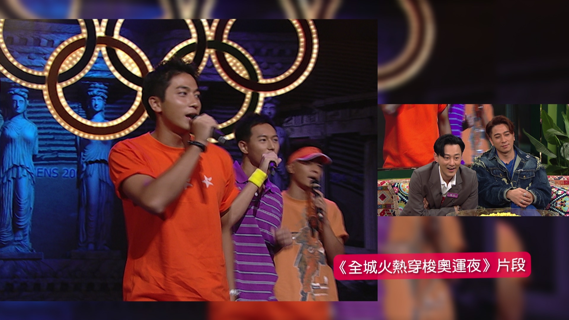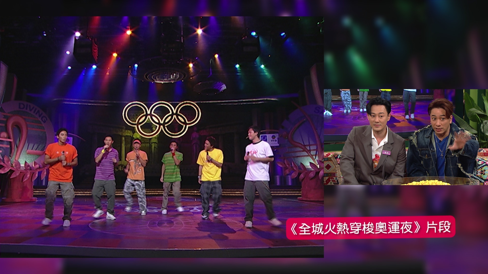 製作組又找來二人當年以「奧運六星」姿態跳唱《全城火熱穿梭奧運夜》的片段,除了有Ron峯,還有黃宗澤、馬國明、黎諾懿及陳鍵鋒。Mayanne笑指眾人當年舞步唔多夾,Ron解釋謂:「我哋當時全部都好忙,我哋排舞好難夾得齊人。我哋嗰時每一個包辦一間廠,每次走出廠喪屍咁。呢個最夾架喇,再拍一條冇可能架喇。」說得興起的Ron更向著Mayanne謂:「你一講我都記得起,你話個印象幾深刻!」