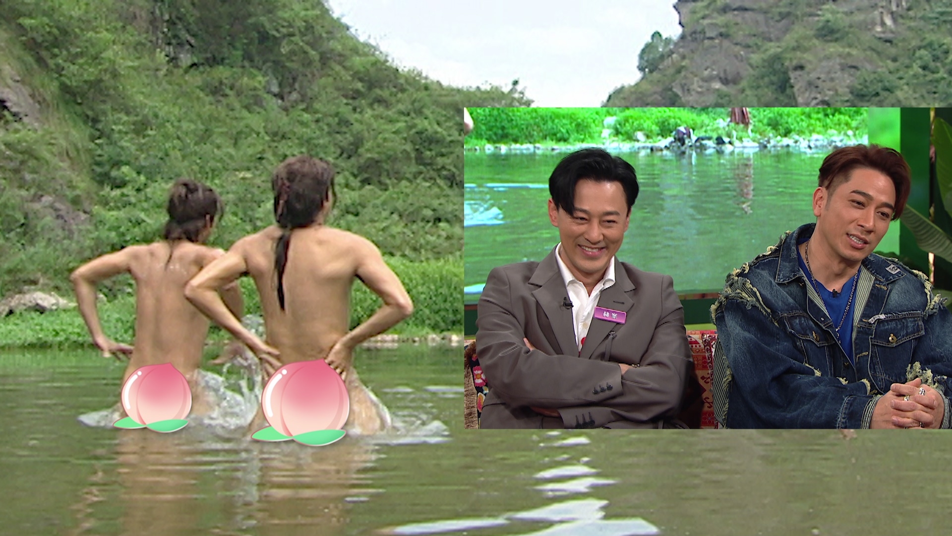 「Ron峯」應製作組要求翻看當年拍攝《大唐雙龍傳》時露股一幕,面對這幕被傳頌多年的經典場口,Ron爆料指是臨場應導演要求進行拍攝:「初初劇本冇架,佢哋話不如整場令伍姑娘尷尬少少(嘅戲),咁佢有咩會尷尬呢?導演就提議除晒,我就問:『出唔出得街呀?除冇問題吖!我哋咁嘅資質,但點樣遮住前面先?」林峯笑笑口接話:「現場有啲大垃圾膠袋,我哋就剪咗個角落頭落嚟…」Ron再搞笑接著說:「我望住佢剪幾大,我咪再剪大啲,鬥大咯!重點係我哋用牛皮膠紙黐。」林峯即大表認同:「黐嗰陣冇問題,搣嗰時大鑊。」