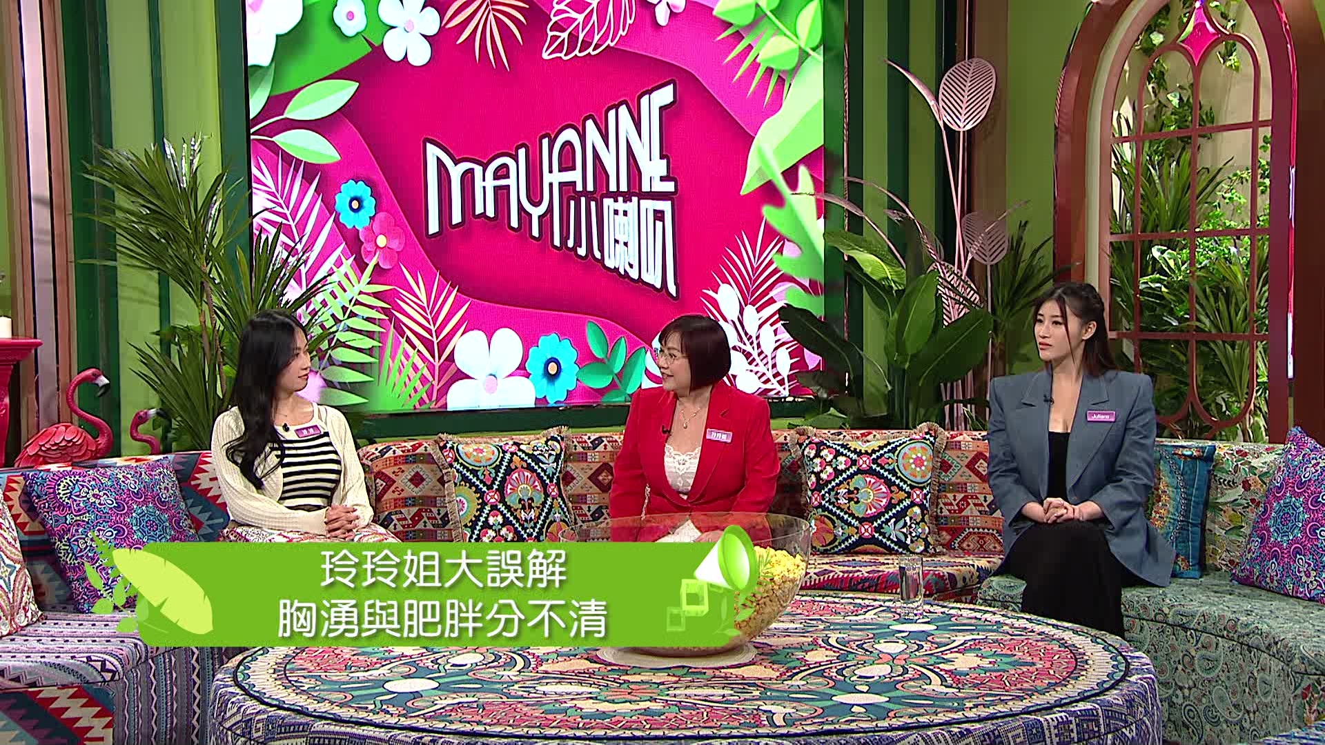 全新清談節目《Mayanne小喇叭》由新鮮出爐的「最佳女主持」麥美恩(Mayanne)和曾展望(GM)擔任主持,節目由今晚(14日)起、逢周四、五晚10點半翡翠台播映。首集以「身材好是現今的流量密碼」做主題,邀來出名身材勁的堪輿學家麥玲玲、郭珮文(Juliana)和黃婧靈(波波)擔任嘉賓。玲玲師傅指從來都不覺得自己身材好,她謙稱:「我覺得肥嘅人身材都係差唔多,都係脂肪嚟啫!從來都以為大家都係差唔多,到自己出嚟做嘢之後,見到人望住我講嘢唔係望住我個頭,而係望住個心口,嗰時先覺得唔對路。」玲玲師傅笑言自己生得比較豐滿和矮小,所以經常穿喱士小背心打底,她說:「當你個人肥時又唔係好高,條頸又短,無論天氣係幾咁寒冷,我都係同大自然對抗,入面都係着背心!」