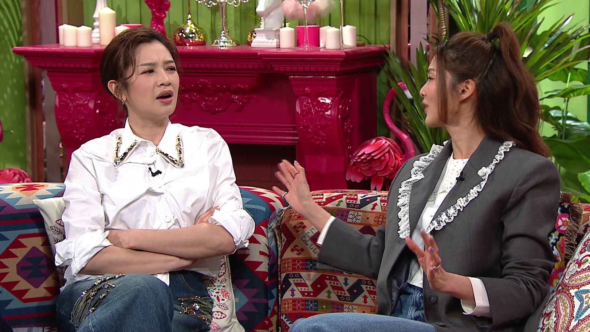 相當熟稔的Mayanne與香香後來東拉西扯談到結婚一事,Mayanne即自責自覺當年「背叛」了香香,到底咩大件事?Mayanne又爆料指,每次媽咪見完香香,返到屋企一定有說話聽:「我媽咪每次見完香香都話嫁得好,呢句聽完我火都嚟埋,意思咪即係點解我唔可學你,搵到好老公咯!」愈說愈激動的Mayanne更忽然大聲問:「我到底爭啲咩呢?」曾展望見狀即醒目以「五個字」化解危機,到底係乜?李亞男亦都無端端無厘頭拉咗王祖藍落水,仲搞到Mayanne即刻Malfunction,到底又係乜?密切留意節目。