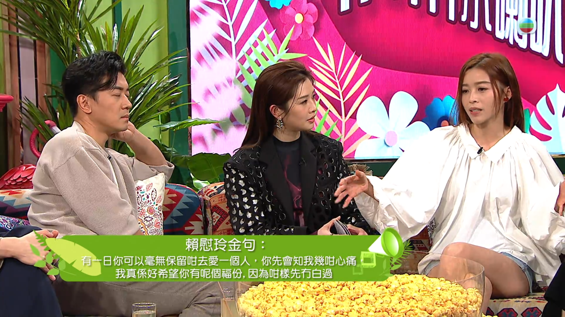 話題劇《婚後事》引起熾熱討論,美恩先探問黎諾懿、賴慰玲共浴戲的「趣味」位,諾懿笑言要兼任道具手足!再向羅子溢、陳自瑤求證拍攝激情場口時,眼睛「關注」的視點;為何自瑤不斷大讚對手? 繼而討論精神、肉體出軌,男女看法大不同,子溢一下「見風轉舵」舉動,還證明他深懂夫妻相處之道。 拜劇集監製所賜,美恩可率先收看大結局,慰玲、諾懿卻指可能有第二個結局?美恩更天馬行空,隨即想出相關「第三個結局」及延續,絕對夠爆!